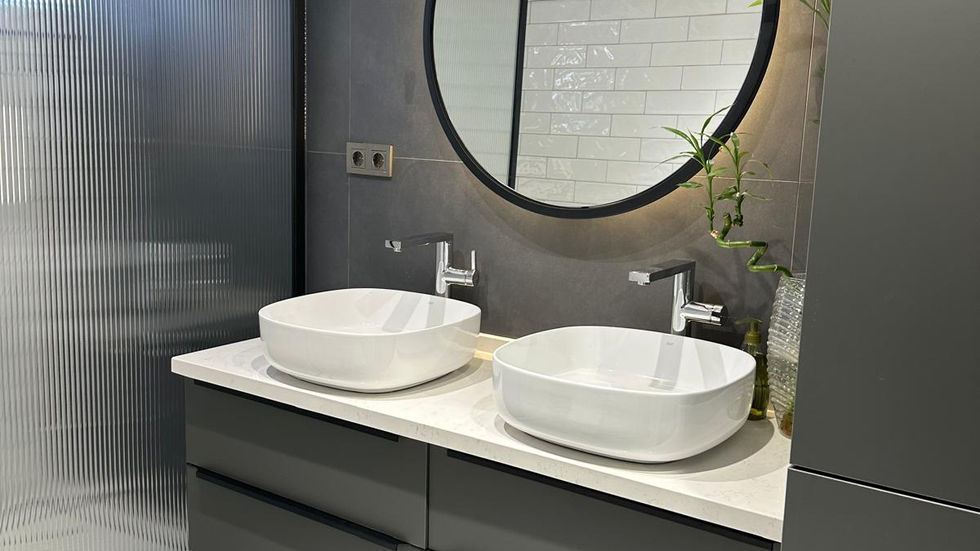 Mutfakta sade renk paleti, düz hatlı dolaplar ve modern aydınlatma tercihleriyle temiz ve düzenli bir görünüm hedeflendi. Açık plan kurgusu sayesinde mutfak, yemek alanı ile bütünleşerek akıcı ve kullanışlı bir yaşam alanına dönüşüyor.